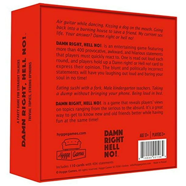 Damn Right Hell No A Party Game For Straight Talkers Walmart Ca